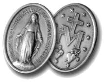 Enfin le tableau se retourne et Catherine voit le revers de la médaille: en haut une croix surmonte l’initiale de Marie, en bas deux cœurs, l’un couronné d’épines, l’autre transpercé d’un glaive.